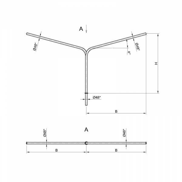 Двухрожковые кронштейны К4-1,5-1,5-1-1 предназначены для крепления светильника на трубчатой опоре освещения.